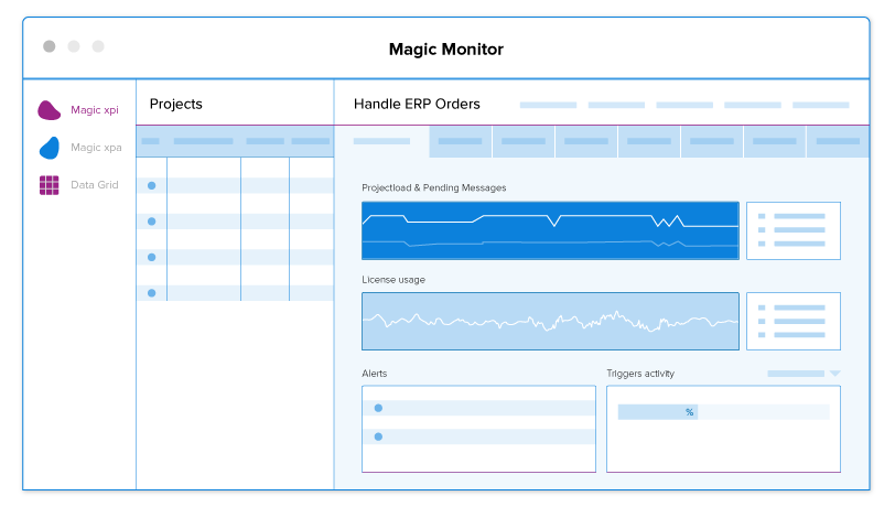 Deje que las caídas o interrupciones sean cosa del pasado, puede sentirse seguro cuando automatice sus integraciones con Magic xpi sabiendo que nuestra arquitectura In-Memory Data Grid (IMDG) produce respaldos automáticos de sus procesos y los distribuye garantizando un rendimiento óptimo en todo momento.