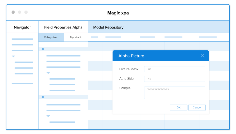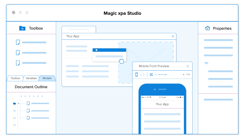 Con la habilidad de rápidamente desarrollar aplicaciones empresariales de escritorio, web y dispositivos móviles para cualquier sistema operativo, puede concentrarse en crear la lógica de negocio correcta en lo que Magic xpa la traduce a implementaciones practicas.